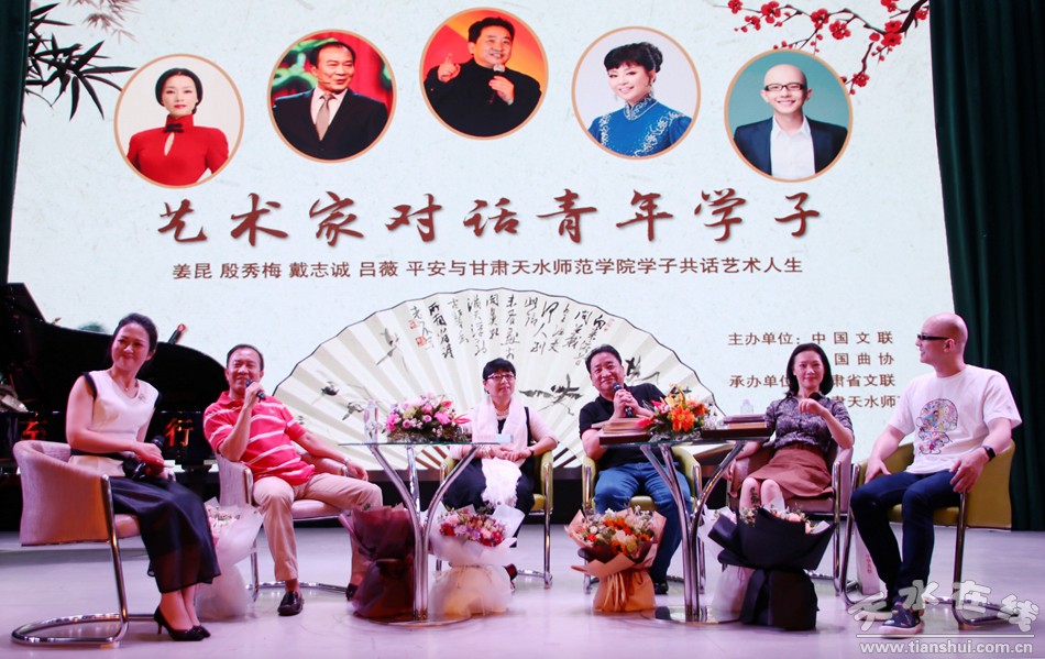 中國曲協(xié)主席、中國文藝志愿者協(xié)會主席姜昆,中國廣播藝術(shù)團女高音歌唱家、中國文藝志愿者協(xié)會副主席殷秀梅,中國曲協(xié)理事、中國文藝志愿者協(xié)會理事戴志誠,海政文工團女高音歌唱家、中國文藝志愿者協(xié)會理事呂薇和青年歌手、CCTV直通春晚全國總冠軍、中國文藝志愿者協(xié)會會員平安在講座上與天水師院學(xué)子共話藝術(shù)人生。