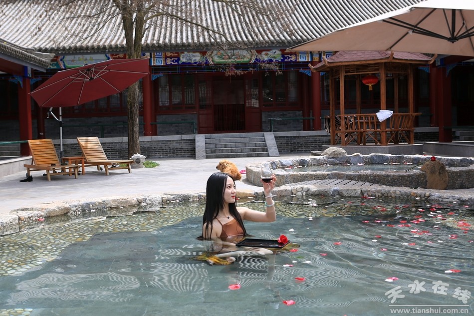 (圖為清水湯峪溫泉四合院的露天溫泉)