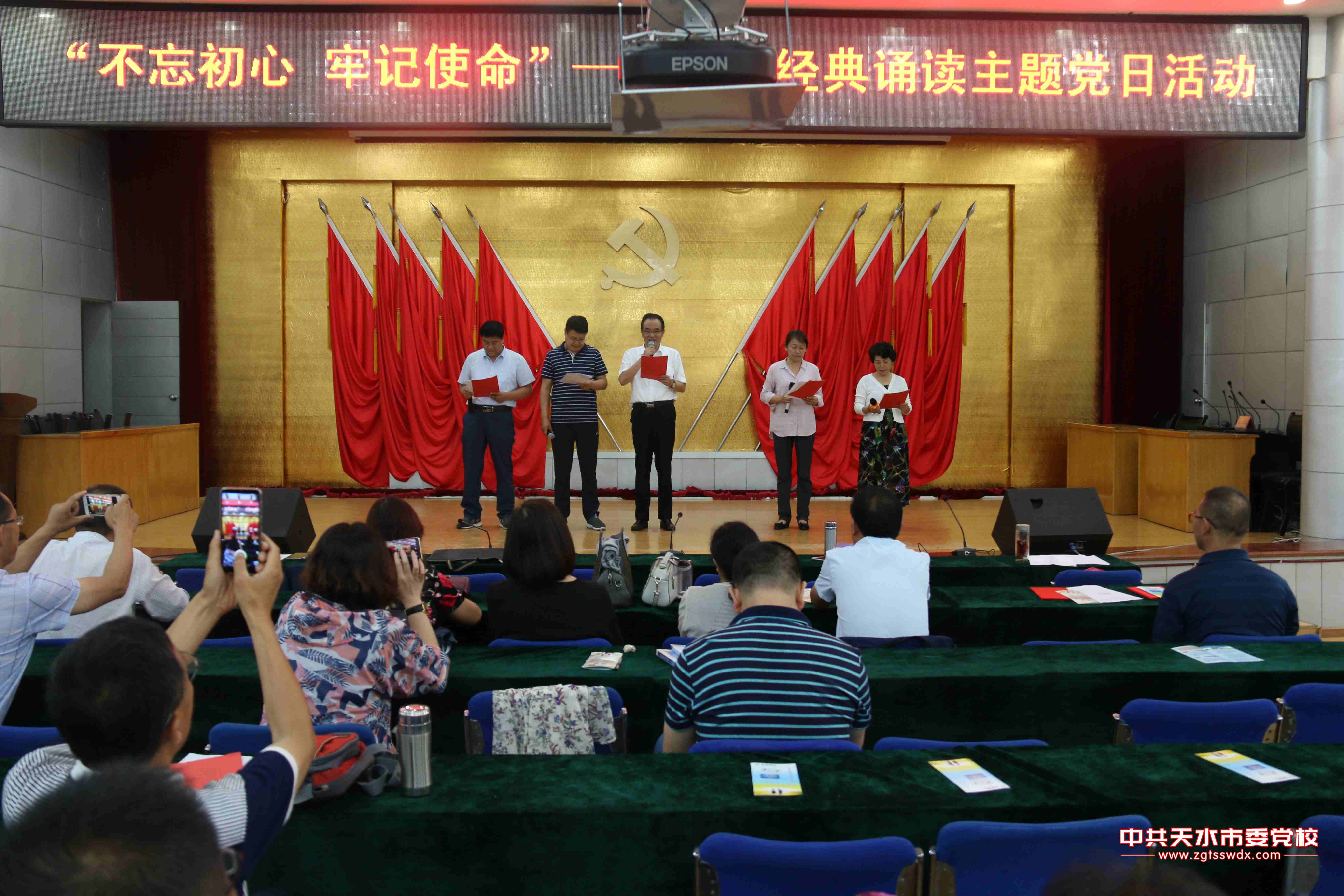。吩拢踩,天水市委黨校舉行紀(jì)念建黨97周年暨紅色經(jīng)典誦讀主題黨日活動(dòng),熱烈慶祝中國共產(chǎn)黨成立97周年。市委黨校常務(wù)副校長(zhǎng)溫欽虎致辭,副校長(zhǎng)朱建章、崔瑞芳,校委委員許有平、陳雪梅參加會(huì)議。