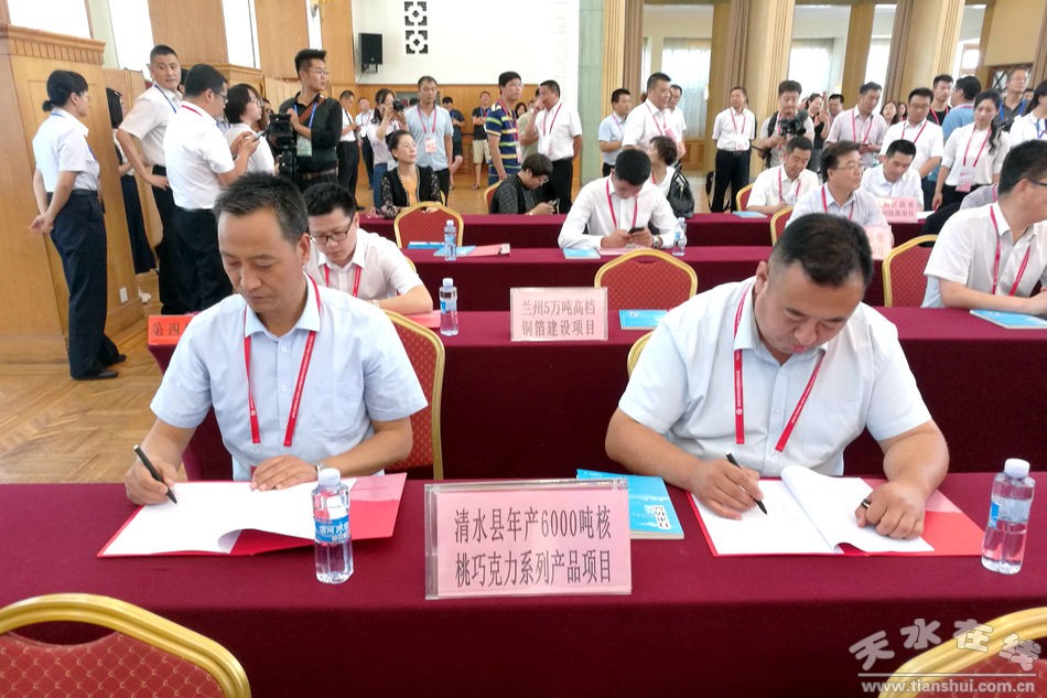 省委副書記孫偉、省人大常委會副主任馬青林、副省長張世珍、省政協(xié)副主席馬文云出席會議,天水市委常委、副市長宮輝以及各市州分管領(lǐng)導(dǎo),省直相關(guān)部門負責(zé)人等出席簽約儀式。甘肅省商務(wù)廳廳長張應(yīng)華主持會議,省政府副秘書長賈寧通報蘭洽會情況。