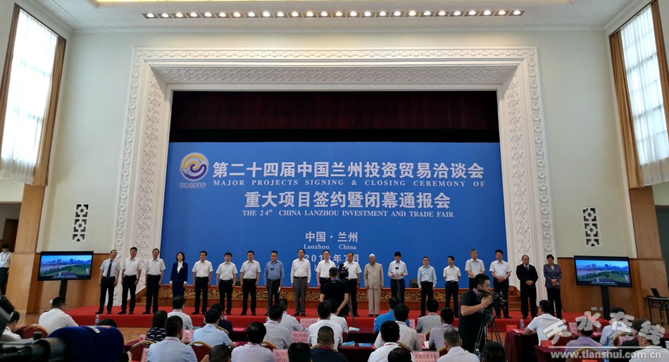 7月9日下午,第二十四屆蘭洽會重大項目簽約儀式暨閉幕通報會在蘭州寧臥莊賓館舉行。