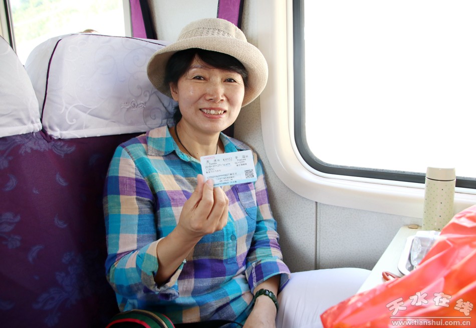 火車上,一位皮膚黝黑的老人引起了記者的注意。這位老人叫李興有,老家在平?jīng),這次特意來看望在天水打工的兒子。老人告訴記者:“以前來天水都要坐5個多小時的汽車,車票也比較貴;這次我兒子給我買了火車票,價格是汽車票的三分之一,速度也快,坐著也舒服!彼f以后再來天水,回去“肯定會選擇這趟直達火車。”