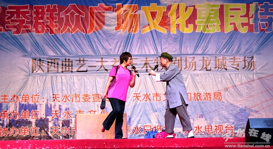 這次陜西曲藝專場演出是我市特邀請陜西大益王木犢劇場全體著名演員,繼天水市秦安縣興國文化廣場成功演出之后,又在天水市第二季龍城廣場群眾文化惠民特色示范展演中精彩亮相,炎炎夏日,市文化館為感謝廣大環(huán)衛(wèi)工人的辛勤勞動(dòng),特邀請秦州區(qū)廣大環(huán)衛(wèi)工人與天水各界群眾一起觀看了演出。