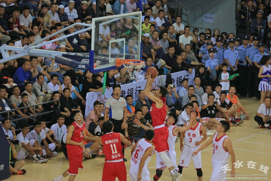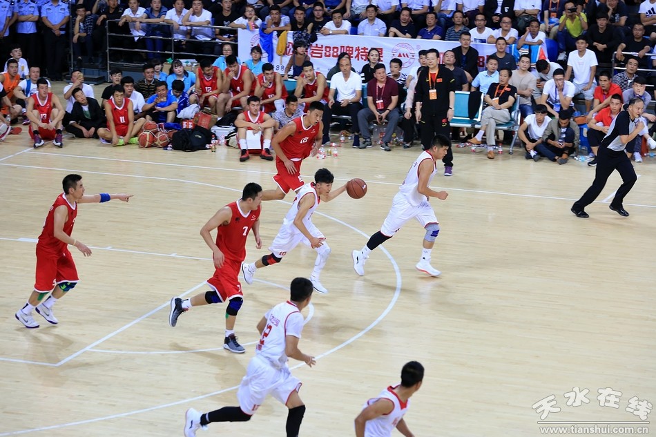 天水在線臨夏訊 8月16日晚,甘肅省第十四屆運動會大眾組籃球賽決賽在臨夏奧體館開戰(zhàn),來自我市的天水昊峰集團代表隊與東道主臨夏東太公司代表隊展開激烈比拼。