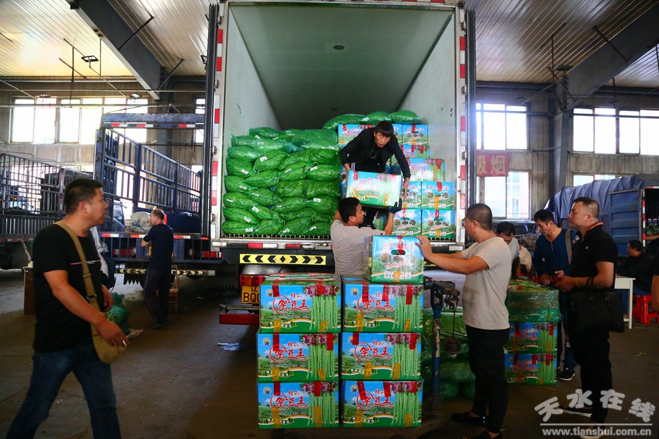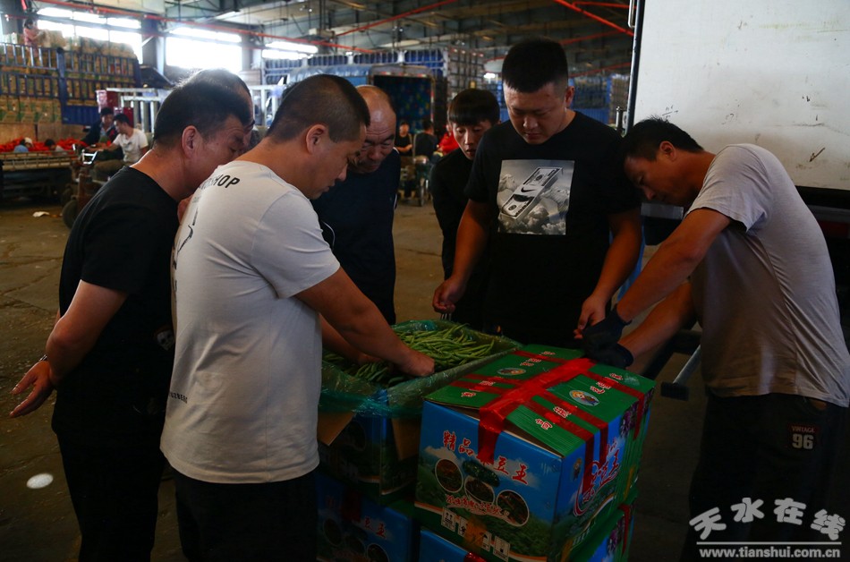 (武山縣副縣長(zhǎng)馬學(xué)軍在盛發(fā)菜果批發(fā)市場(chǎng)了解武山豆角銷售情況)