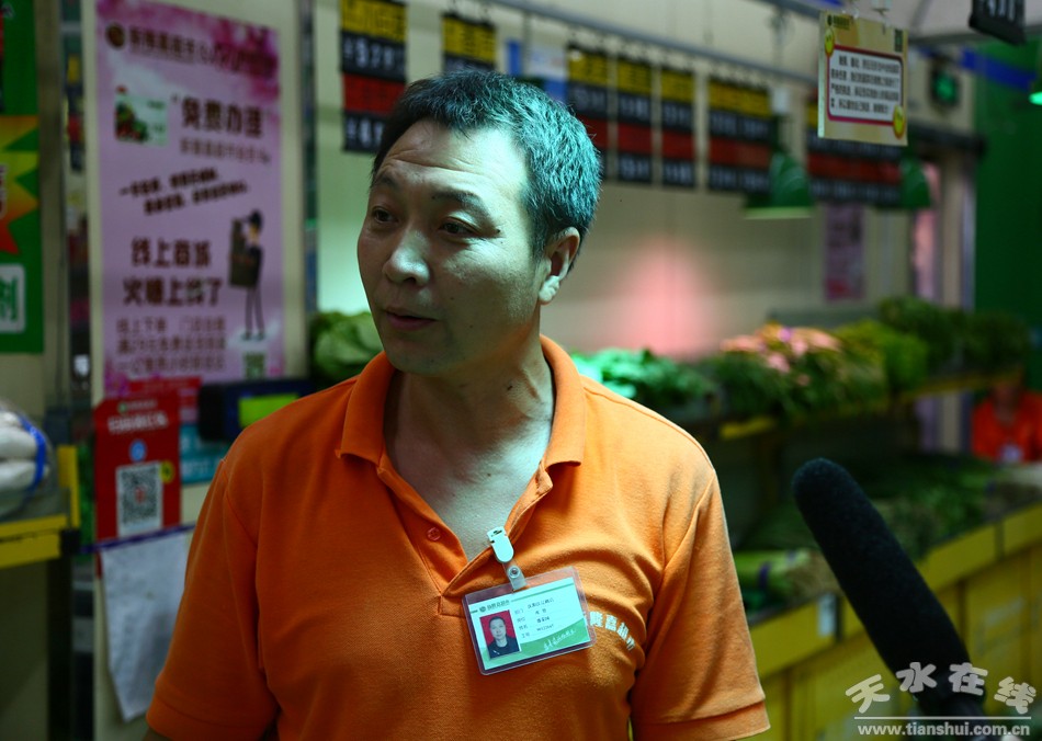 (新隆嘉超市庫(kù)管邵先生接受天水在線等記者采訪)
