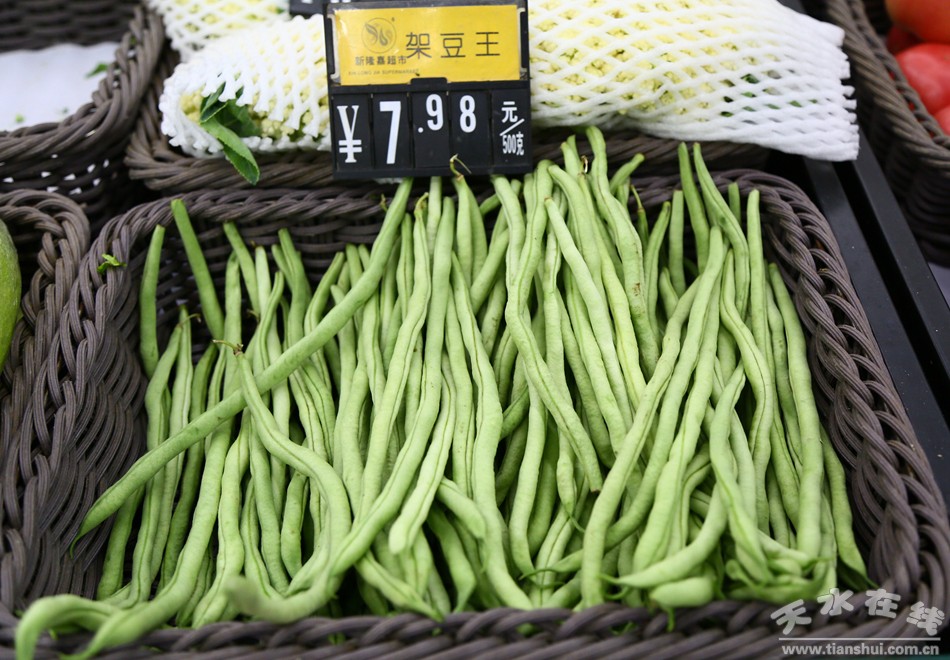 31日下午,采訪組一行先后深入鐵西區(qū)地利生鮮菜果連鎖店和沈河區(qū)華潤(rùn)萬家、新隆嘉連鎖超市,對(duì)武山豆角在超市的零售情況進(jìn)行走訪調(diào)查。新隆嘉超市沈陽(yáng)遼沈路店庫(kù)管紹榮國(guó)指著蔬菜零售區(qū)的架豆告訴記者:“這個(gè)架豆是甘肅武山縣產(chǎn)的,批發(fā)到盛發(fā)市場(chǎng),我們從盛發(fā)采購(gòu)的,顧客反響很好,品質(zhì)好,口感不錯(cuò)。今天一斤的價(jià)格是7.98元,一天能賣十箱左右!
