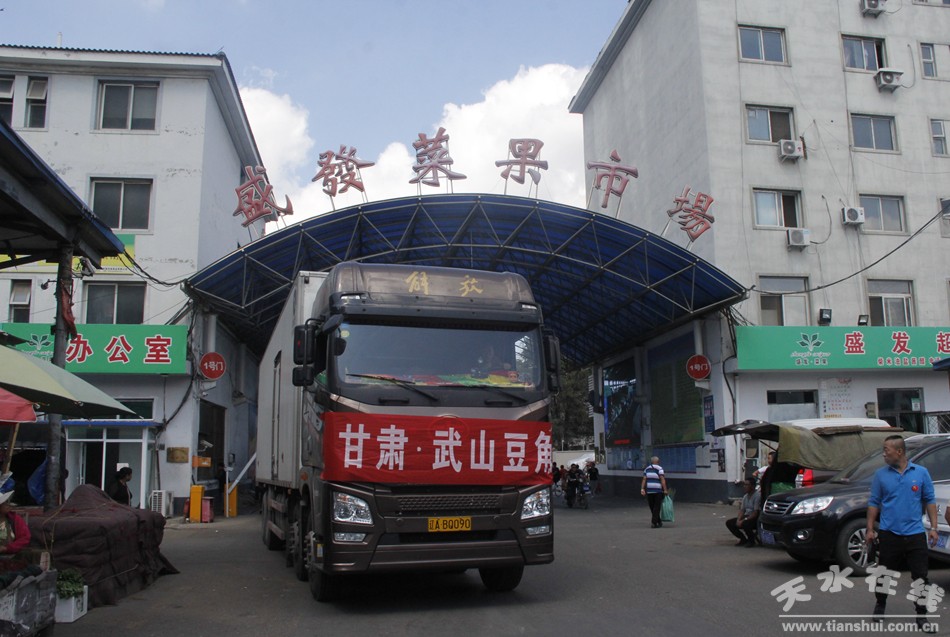 31日一大早,在沈陽(yáng)市于洪區(qū)政府相關(guān)部門負(fù)責(zé)人和盛發(fā)菜果批發(fā)有限公司負(fù)責(zé)人的陪同下,采訪組再次深入盛發(fā)菜果批發(fā)市場(chǎng),共同見證了從武山運(yùn)送豆角的大貨車進(jìn)入市場(chǎng)的熱烈場(chǎng)面。