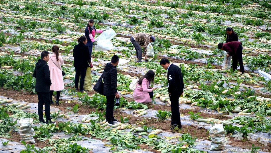 (清水縣農(nóng)發(fā)公司現(xiàn)場收購秦亭鎮(zhèn)村民種植的蔬菜)