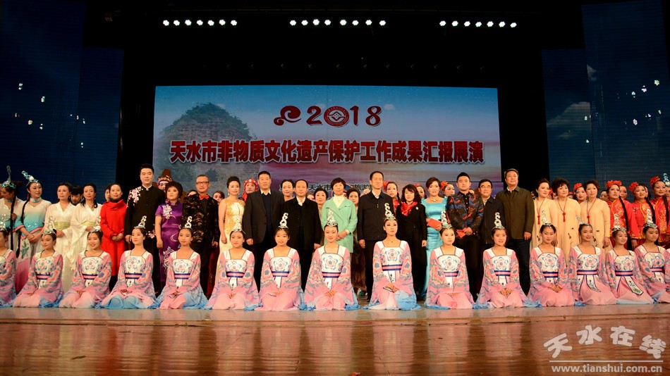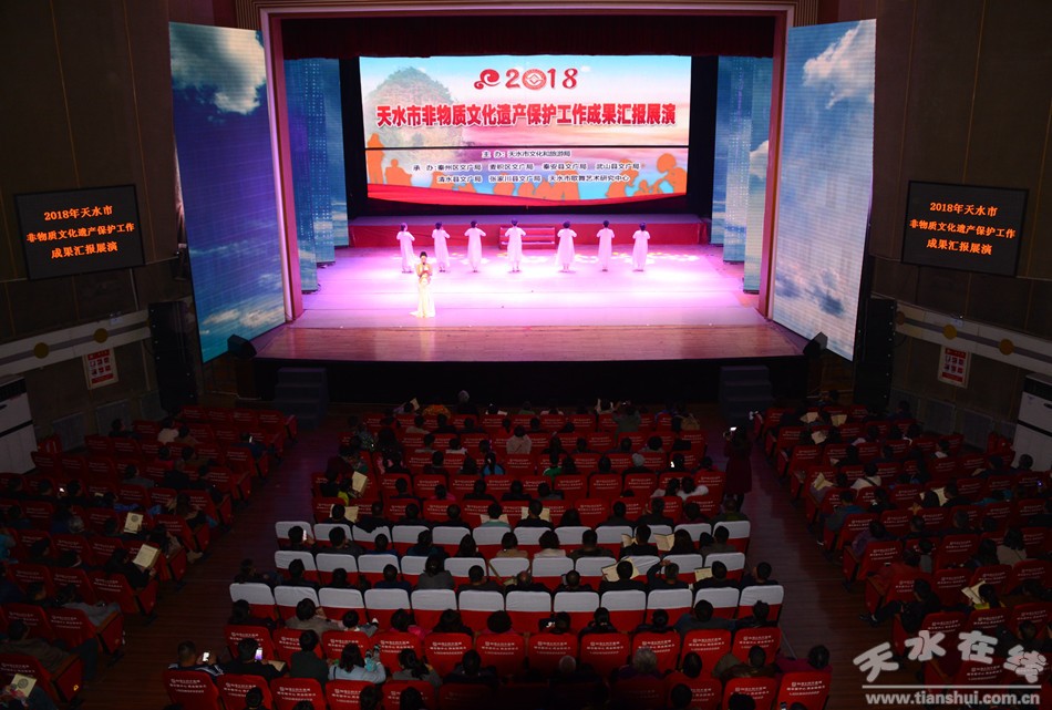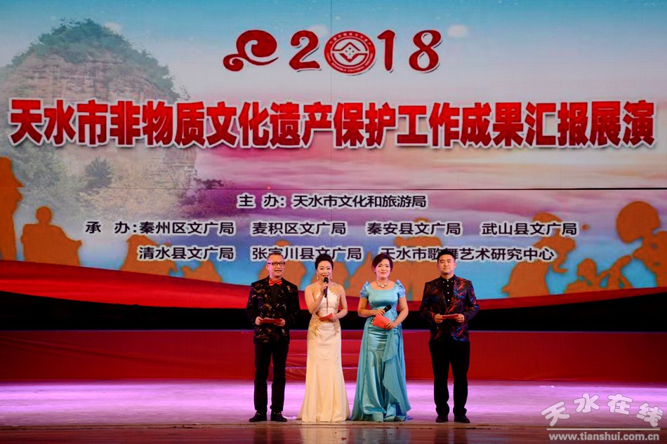 10月26日晚,由天水市文化和旅游局主辦,秦州區(qū)文廣局、麥積區(qū)文廣局、秦安縣文廣局、武山縣文廣局、清水縣文廣局、張家川縣文廣局,天水市歌舞藝術(shù)研究中心承辦的2018天水市非物質(zhì)文化遺產(chǎn)保護(hù)工作成果匯報(bào)展演在秦州大劇院舉行。“花兒”、小曲、鞭桿舞、蠟花舞、旋鼓舞等輪番上演,演員們精彩的演出讓觀眾感受到了傳統(tǒng)文化散發(fā)的無窮魅力。市人大常委會(huì)副主任王曉琴、市政協(xié)副主席蘇定武觀看演出。