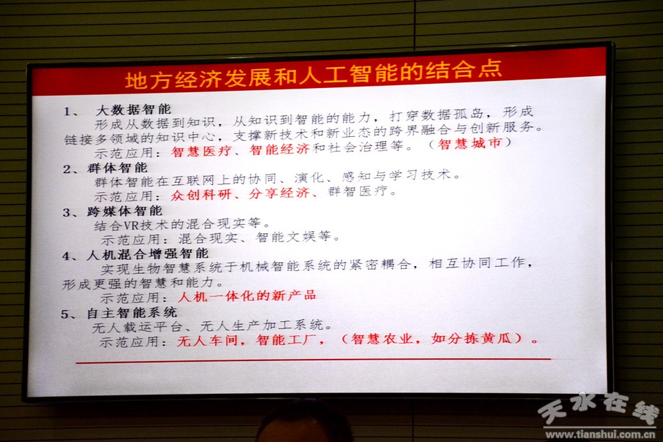 (天水師范學院機電與汽車工程學院副教授時立民作題為《為經(jīng)濟發(fā)展插上人工智能的翅膀》的專題輔導)
