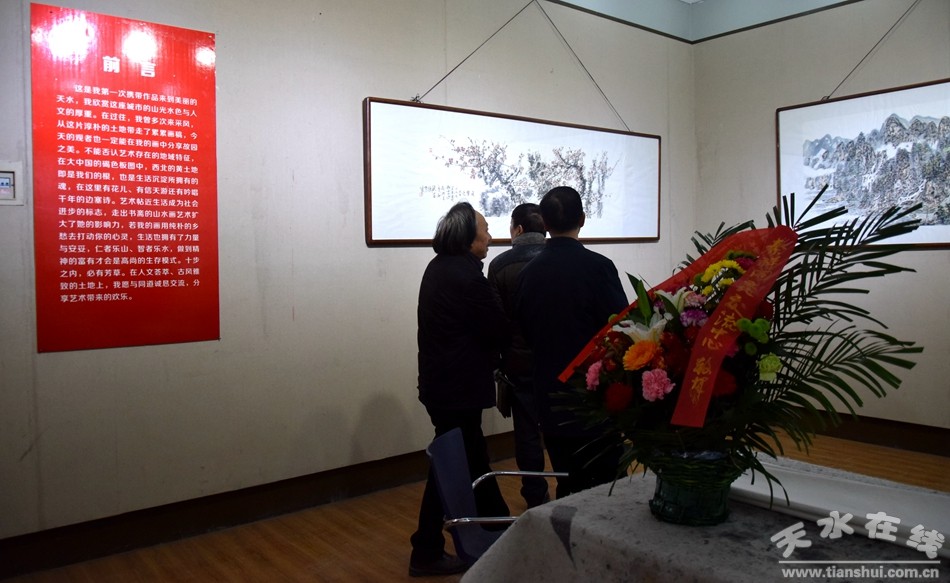 12月14日,中國美術(shù)家協(xié)會會員、陜西國畫院專業(yè)畫家、陜西省國畫院山水畫院執(zhí)行院長、陜西山水畫研究會副主席、陜西長安畫派研究院研究員季秀偉先生山水畫作品展在天水市文化館開展。天水市人大常委會副主任蒲朝暉、市政協(xié)副主席蘇定武出席書畫展開幕式并觀看了展覽。