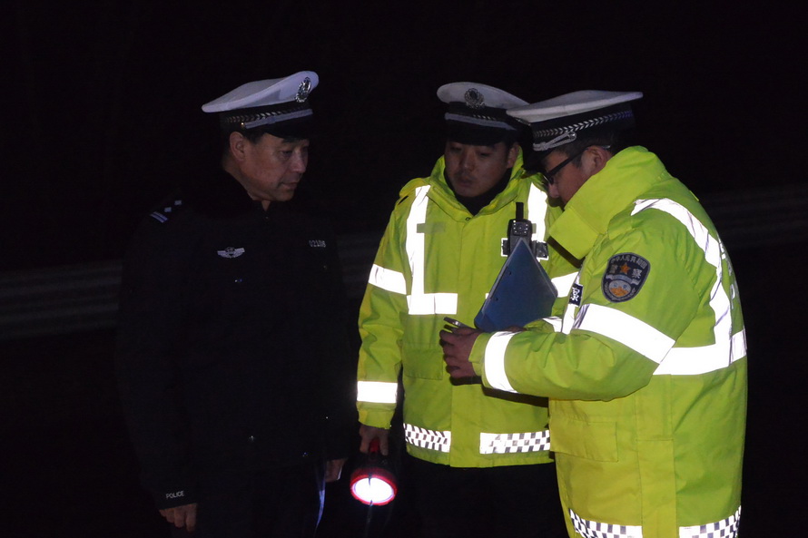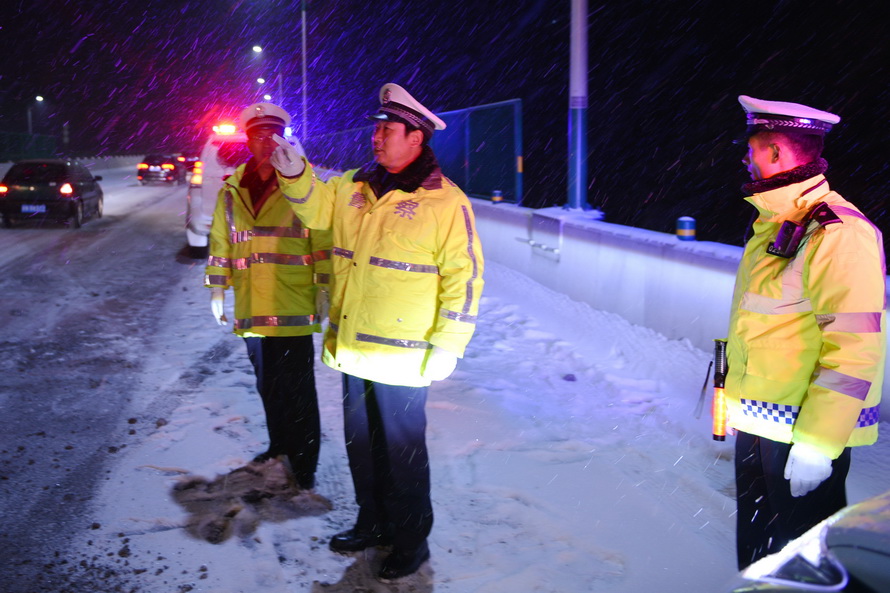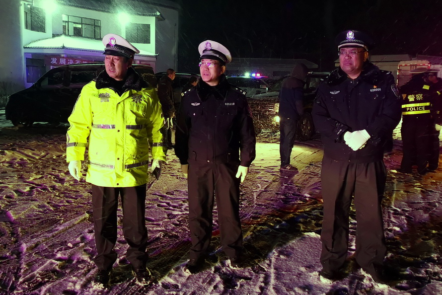 (市公安局黨委委員、交警支隊(duì)支隊(duì)長(zhǎng)柳潤(rùn)泰雪天檢查道路交通安保情況)