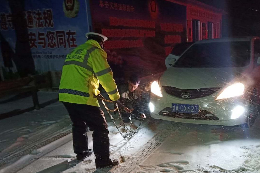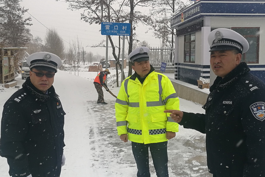 (市公安局交警支隊(duì)副支隊(duì)長(zhǎng)何永東雪天檢查道路交通安保情況)
