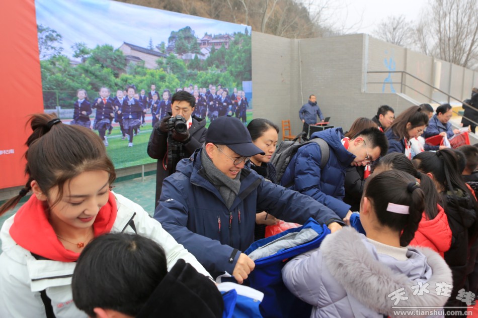 軟件之外還有更多愛心人士送來了必不可少的基礎(chǔ)硬件:北京康盛萊科技有限公司董事長(zhǎng)張皓凱與SOHO中國基金會(huì)分別向潘集寨學(xué)校捐款100萬元,為孩子們配備人工智能課程的學(xué)習(xí)終端;戶外領(lǐng)導(dǎo)品牌探路者則為孩子們送上了過冬沖鋒衣。這樣一場(chǎng)愛心捐贈(zèng)活動(dòng)成為了放假前給孩子們最好的春節(jié)禮物。有關(guān)領(lǐng)導(dǎo)、天水籍演員馬春瑞等出席了本次活動(dòng)。