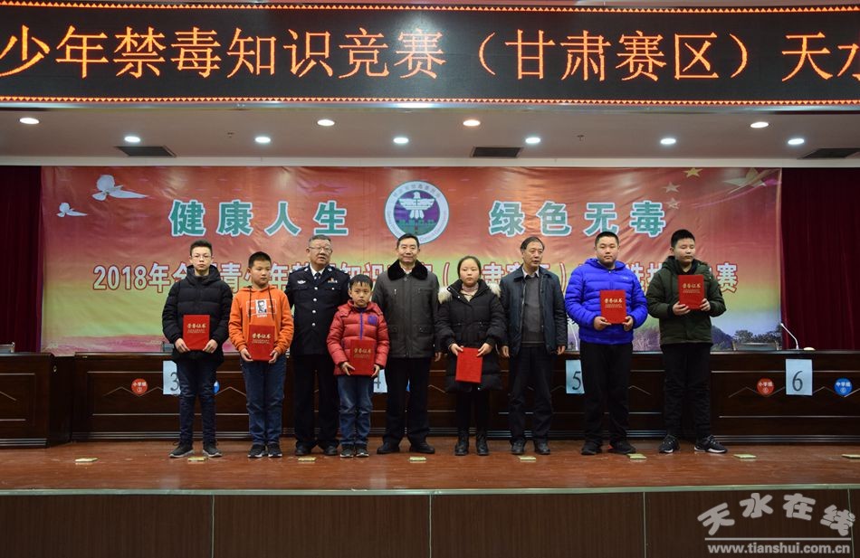 1月14日下午,由甘肅省禁毒辦主辦、天水市禁毒辦承辦,以“健康人生、綠色無毒”為主題的全國青少年禁毒知識(shí)競(jìng)賽(甘肅賽區(qū))天水選拔賽決賽在市公安局舉辦。省禁毒辦副主任李歲來出席活動(dòng)并致辭。市禁毒委副主任、市公安局副局長(zhǎng)桐向東,市禁毒辦專職副主任劉士杰為獲獎(jiǎng)選手頒獎(jiǎng)。