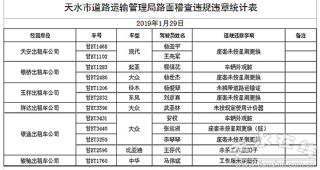 現(xiàn)將1月29日出租車路面稽查違規(guī)違章情況進行通報。