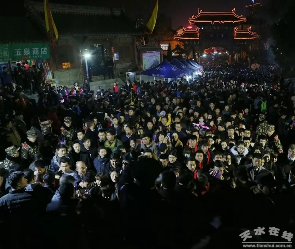初八夜十一時至初九凌晨一時,為進香高峰時,據(jù)初步統(tǒng)計,此時玉泉觀聚集人數(shù)達到十萬人次,官兵的執(zhí)勤任務(wù)也是非常的繁重。為維護秩序,保護群眾安全,武警天水支隊機動中隊官兵全員出動,全程采取“蛇形通道,定點警戒,哨兵警戒,偵察巡邏”的方法全程保障玉泉觀內(nèi)秩序,確保了執(zhí)勤期間的安全。