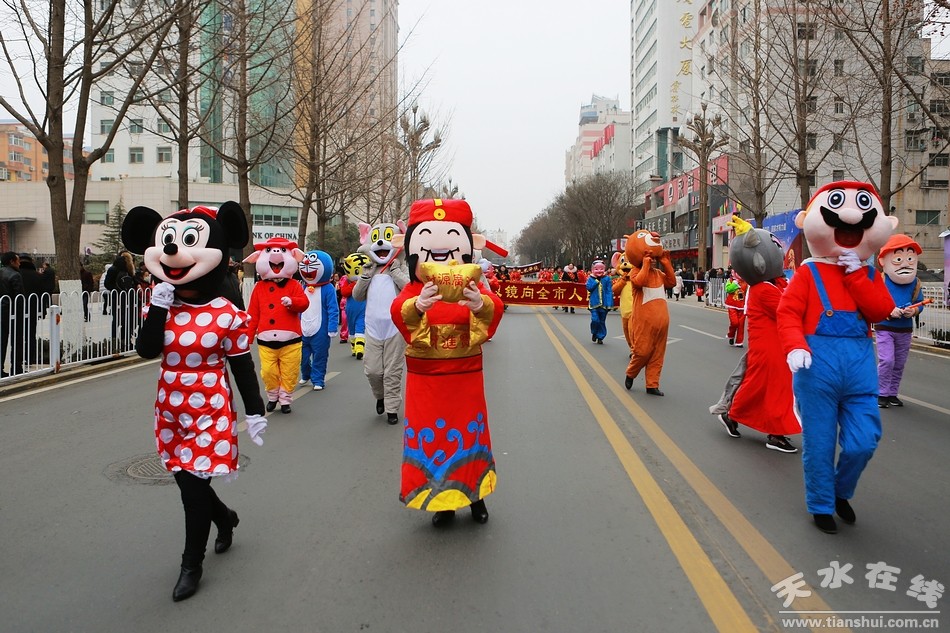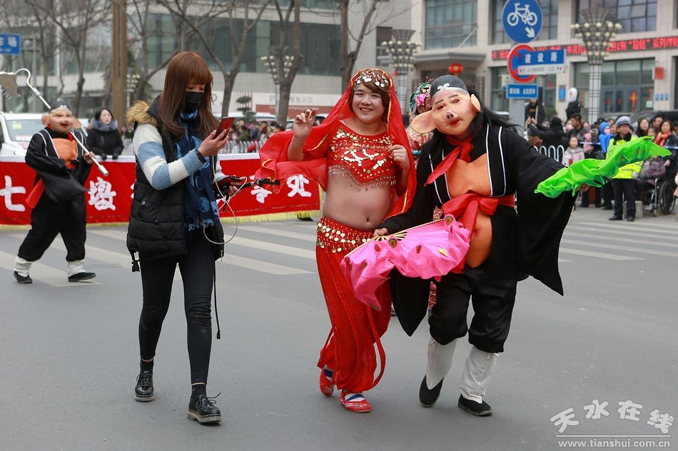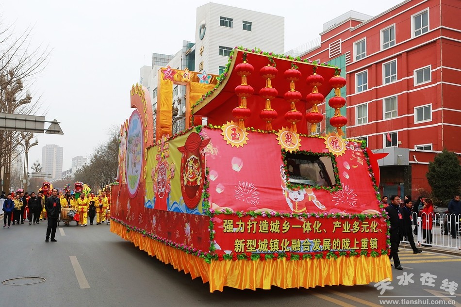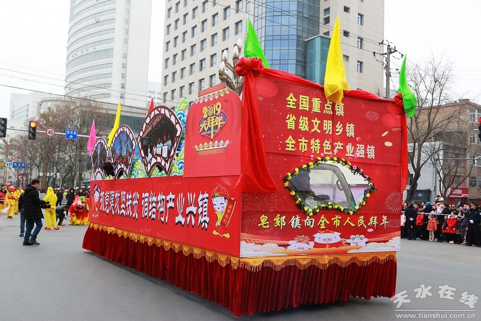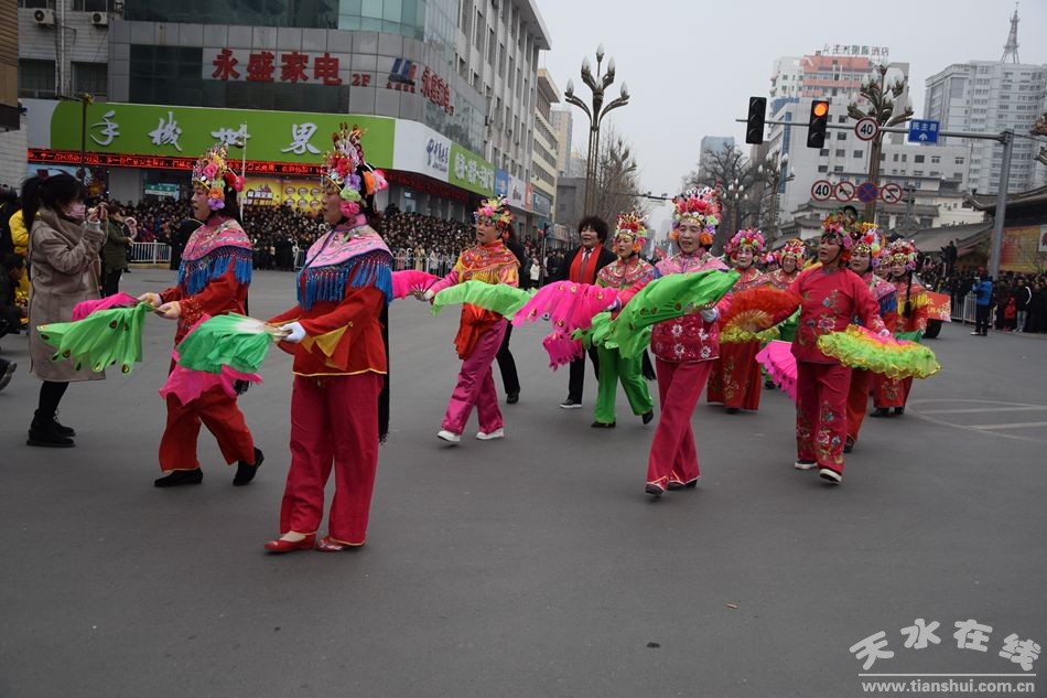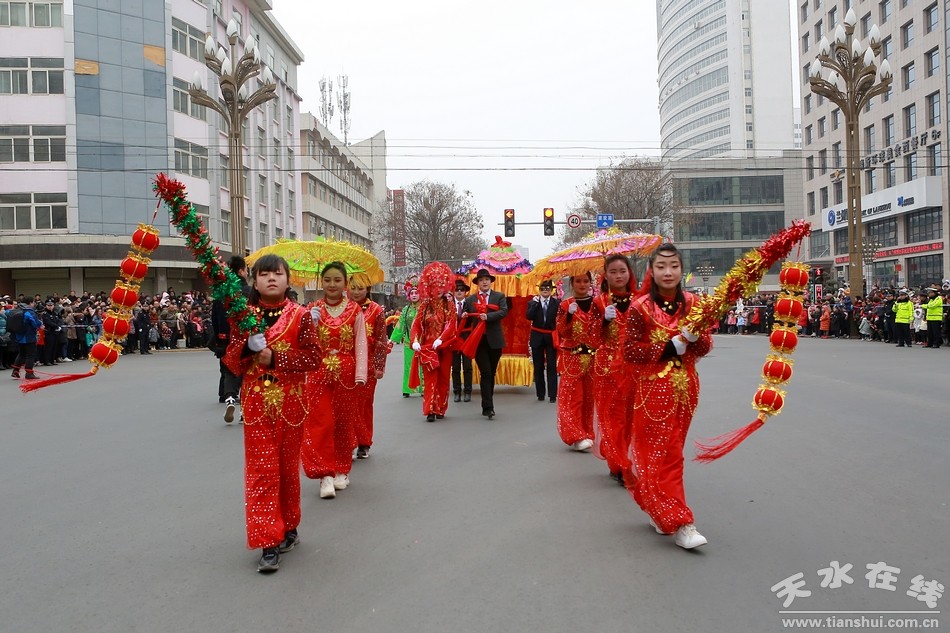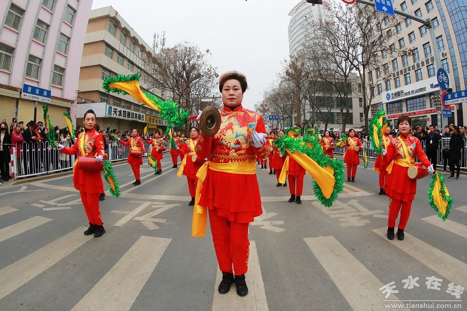 天水在線(xiàn) 秦州區(qū)外宣辦2月16日聯(lián)合報(bào)道(劉可)今天(農(nóng)歷正月十二)上午,秦州區(qū)2019年社火匯演如期舉行。由各鄉(xiāng)鎮(zhèn)街道社區(qū)組織的社火表演隊(duì),敲起鑼鼓,扭起秧歌,正月的秦州街頭,熱鬧非凡,年味十足。