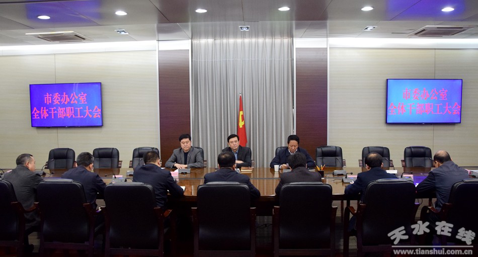 2月25日,天水市委辦公室召開全體干部職工大會(huì),宣布市委的任命決定。市委副書記趙衛(wèi)東出席會(huì)議并講話。