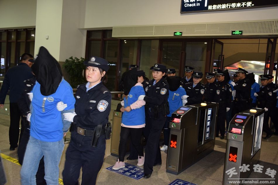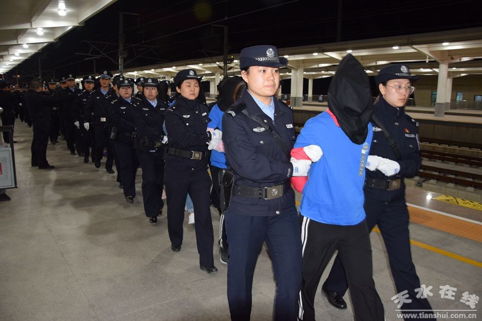 4月12日22時許,隨著G4291次列車緩緩駛入天水南站,天水市公安機關偵辦的部督“2.22” 制作、復制、販賣、傳播淫穢物品牟利案首批19名涉案犯罪嫌疑人被安全押解到天水。
