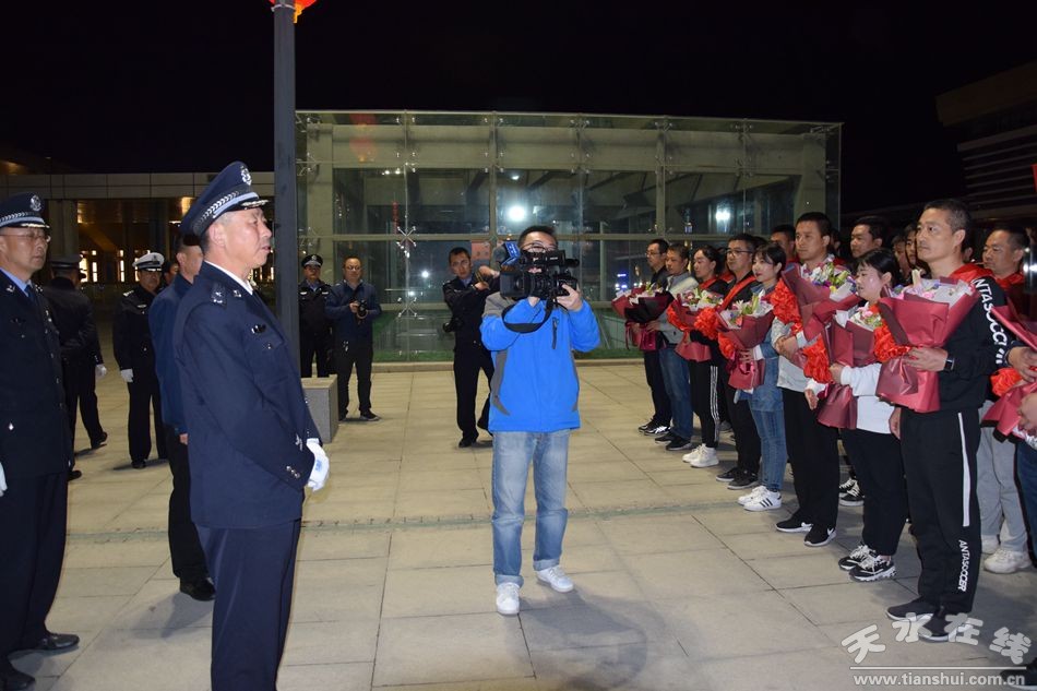 副市長、市公安局黨委書記、局長馬瑛帶領市局和秦州分局有關人員迎接專案民警凱旋歸來,向專案民警長期的辛勤付出表示慰問,對他們取得的驕人戰(zhàn)果表示祝賀。