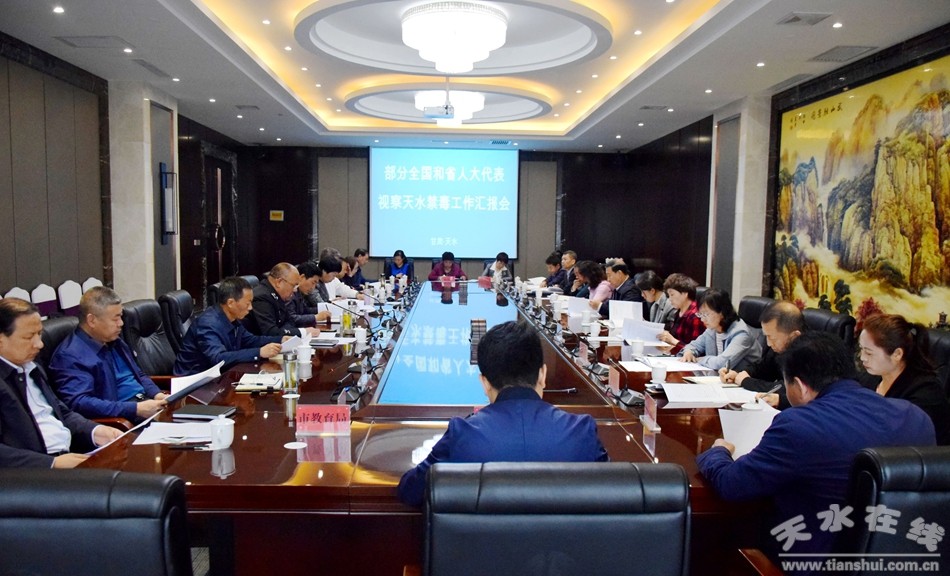 視察組先后深入秦州區(qū)、甘谷縣,對(duì)天水市強(qiáng)制隔離戒毒所,兩縣區(qū)檢查院、公安局、法院、青少年禁毒教育基地、美沙酮門(mén)診及部分社區(qū)、學(xué)校等地進(jìn)行視察,通過(guò)實(shí)地查看、查閱資料、聽(tīng)取匯報(bào)等方式,詳細(xì)了解了我市禁毒預(yù)防宣傳教育、禁吸戒毒、禁種鏟毒工作開(kāi)展情況。并召開(kāi)座談會(huì),聽(tīng)取全國(guó)和省人大代表的建議和意見(jiàn)。