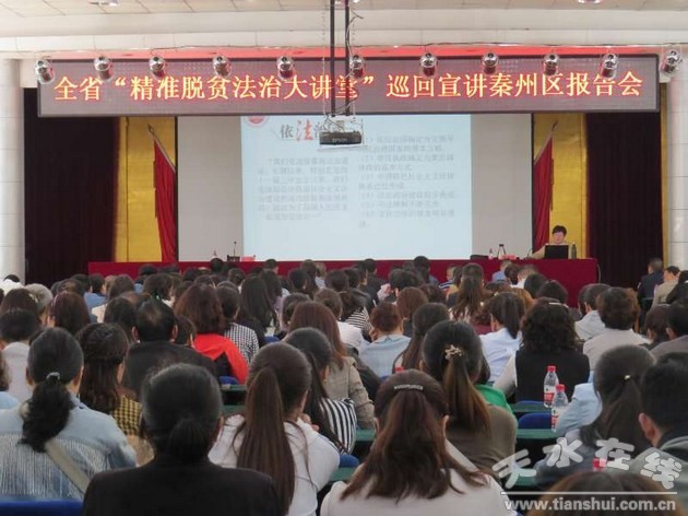 秦州區(qū)委、區(qū)政府分管領(lǐng)導(dǎo),各鎮(zhèn)、街道主要領(lǐng)導(dǎo)、分管領(lǐng)導(dǎo)、司法所長(zhǎng),區(qū)直部門、單位主要領(lǐng)導(dǎo),各社區(qū)書記、街道干部、村(社區(qū))群眾代表,秦州區(qū)貧困村第一書記共500余人聆聽了報(bào)告會(huì)。