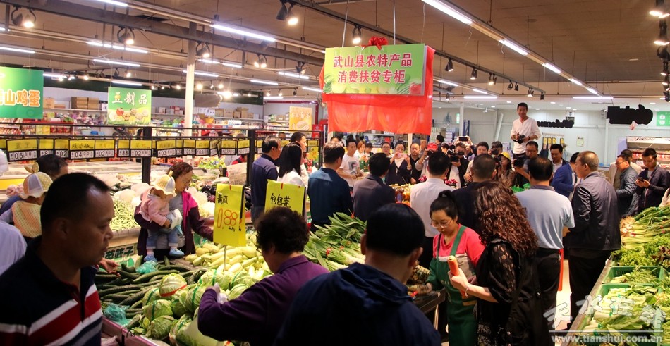 (天水市商務(wù)局局長(zhǎng)馬小龍宣布:武山縣農(nóng)特產(chǎn)品消費(fèi)扶貧進(jìn)超市專柜銷售正式啟動(dòng))
