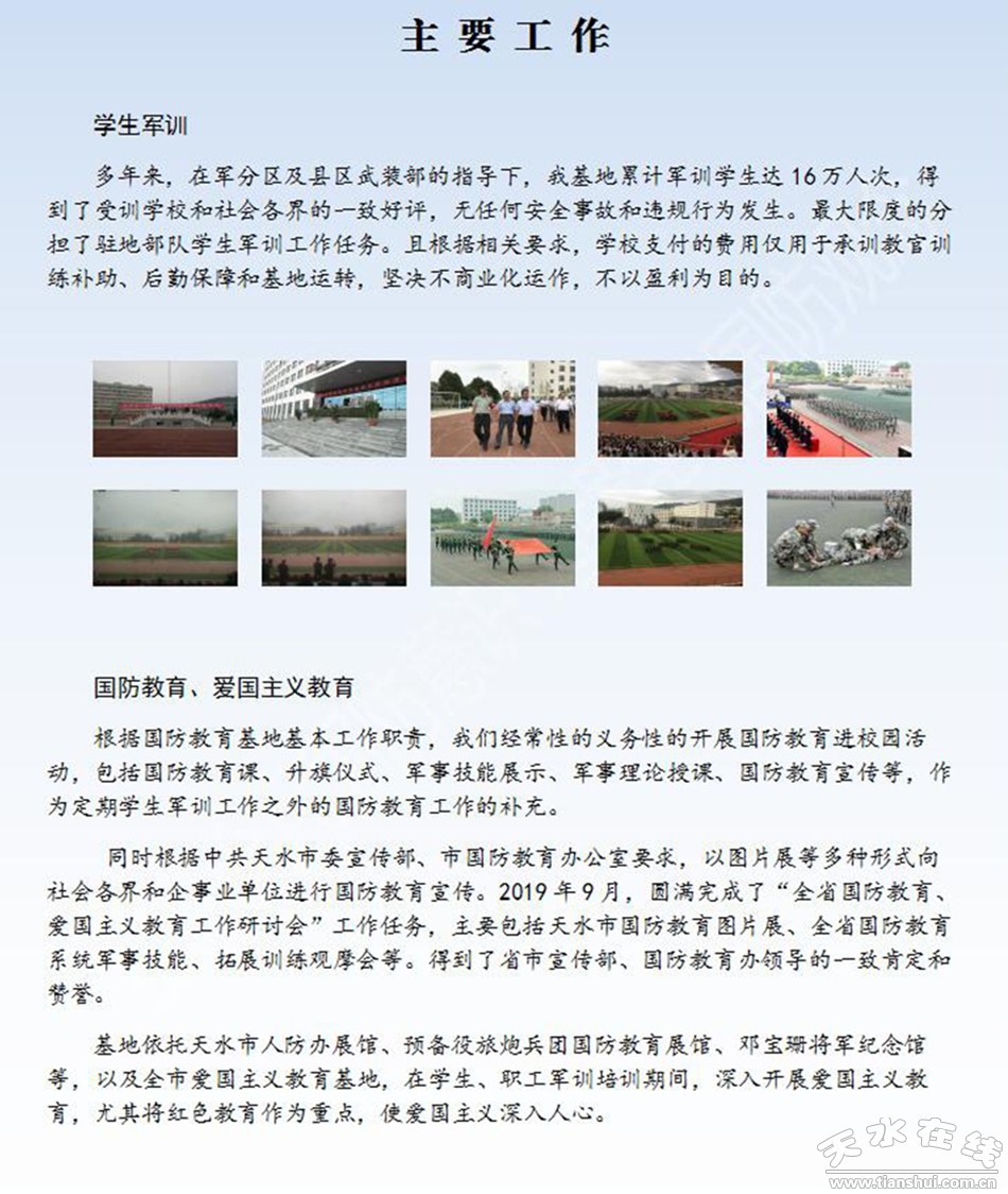 、佻F(xiàn)場報名:天水市國防教育基地(乘坐公共汽車至219公交車站下車,向東20米天池家園路口右轉(zhuǎn),至天水市高家灣南山生態(tài)園10分鐘即到)