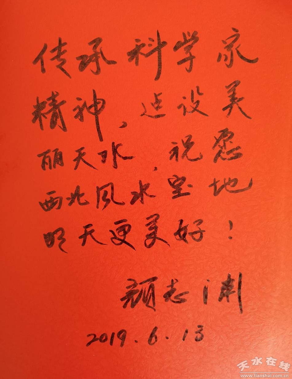 (中國近代著名醫(yī)學(xué)教育家顏福慶先生的孫子顏志淵先生為天水題詞寄語:傳承科學(xué)家精神,建設(shè)美麗天水!祝愿西北風(fēng)水寶地明天更美好。