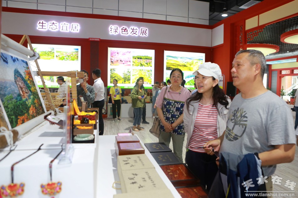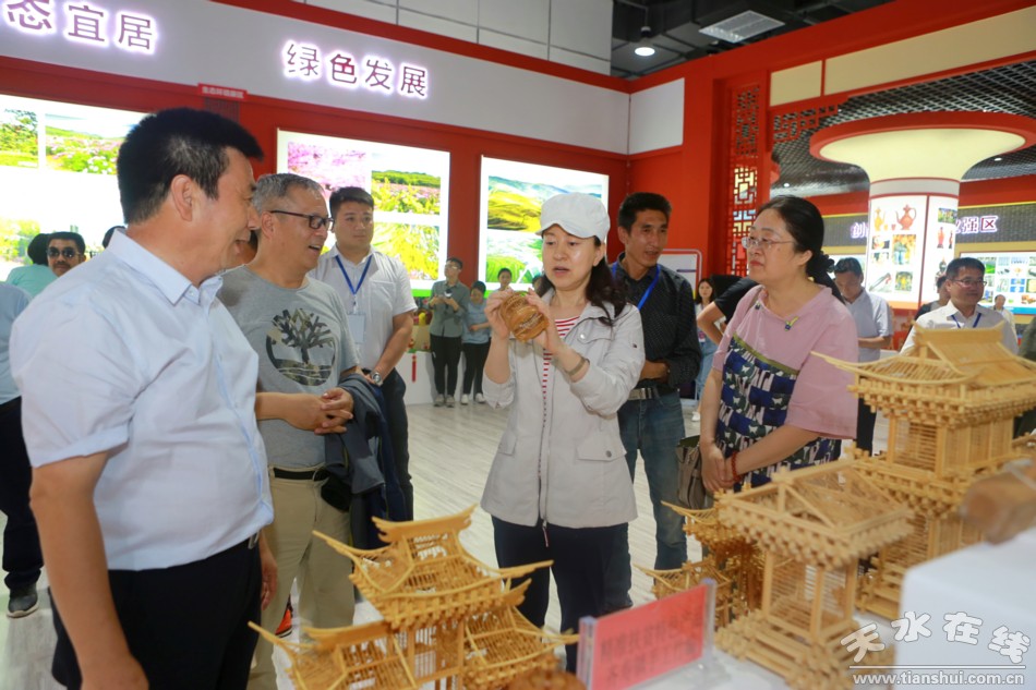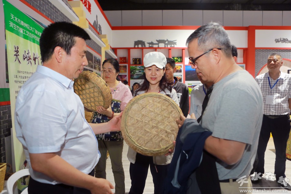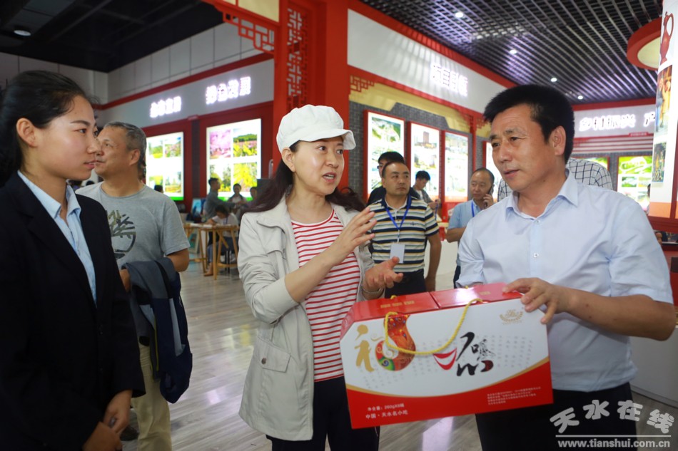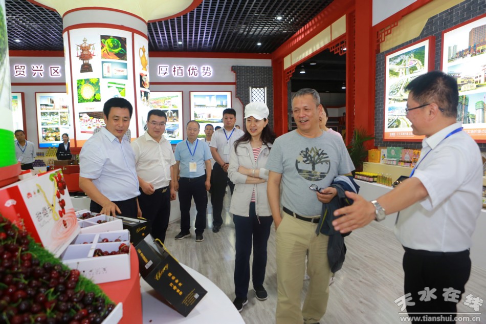 天水在線6月20日攝影報(bào)道 在2019(己亥)年公祭中華人文始祖伏羲大典暨第30屆天水伏羲文化旅游節(jié)即將開幕之際,6月20日上午,中國社會科學(xué)院歷史研究所研究員樓勁,天水籍知名人士、中央電視臺《中華情》總導(dǎo)演、秦州大櫻桃公益代言人郭霽紅女士應(yīng)邀來到位于天水市會展中心的2019年名優(yōu)產(chǎn)品暨海峽兩岸特色商品博覽會秦州館參觀。秦州區(qū)委副書記、區(qū)長劉文璽陪同參觀。