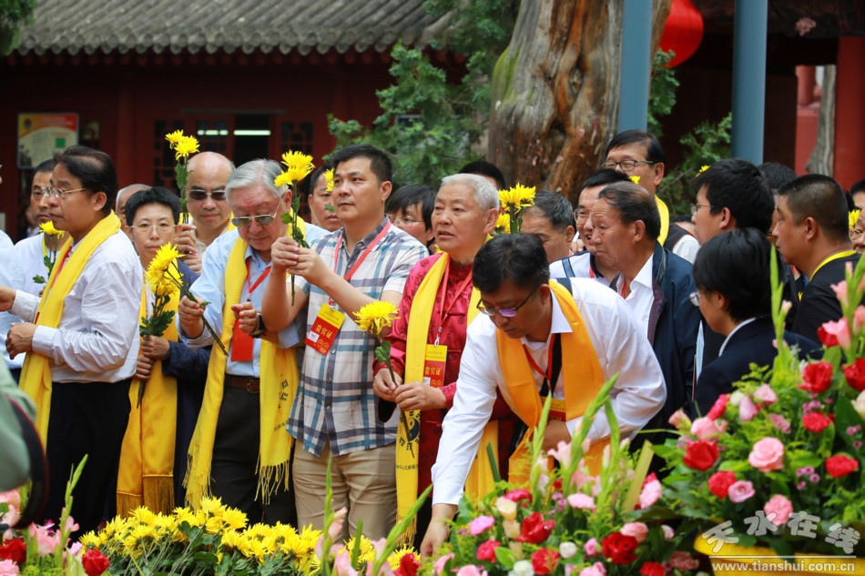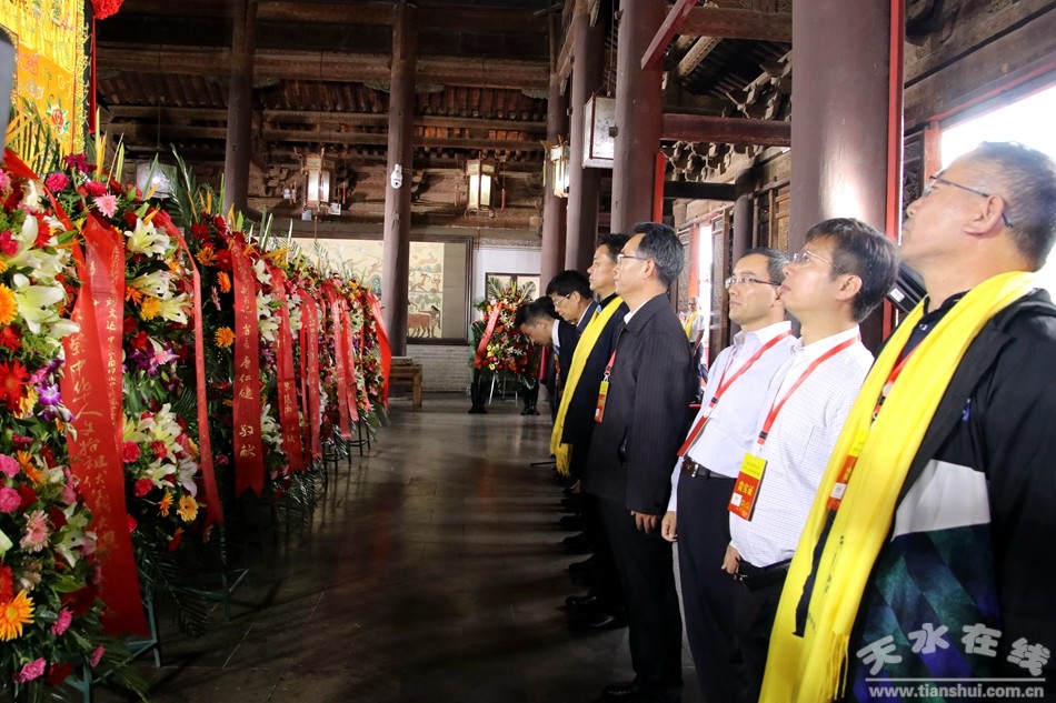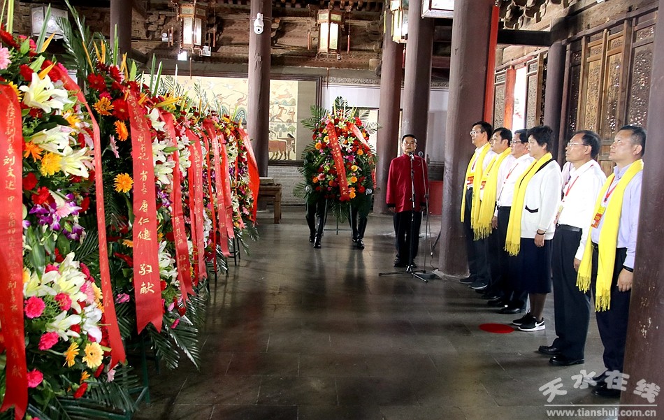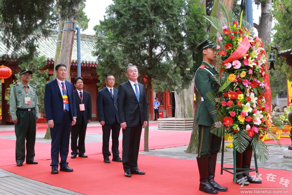 。ǜ拭C省政協(xié)原黨組副書(shū)記、副主席張津梁,甘肅省軍區(qū)原副政委、少將,甘肅省伏羲文化研究會(huì)指導(dǎo)委員會(huì)主席楊耀春,深圳市政協(xié)原副秘書(shū)長(zhǎng)、接待辦原副主任張國(guó)英,甘肅省文聯(lián)原副主席曹銳,香港孔子教育學(xué)院院長(zhǎng)、世界儒商聯(lián)合會(huì)會(huì)長(zhǎng)湯恩佳代表伏羲文化專家、學(xué)者敬獻(xiàn)花籃。 )