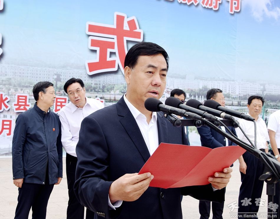 (市人大常委會副主任、清水縣委書記劉天波在開幕式上致辭。)