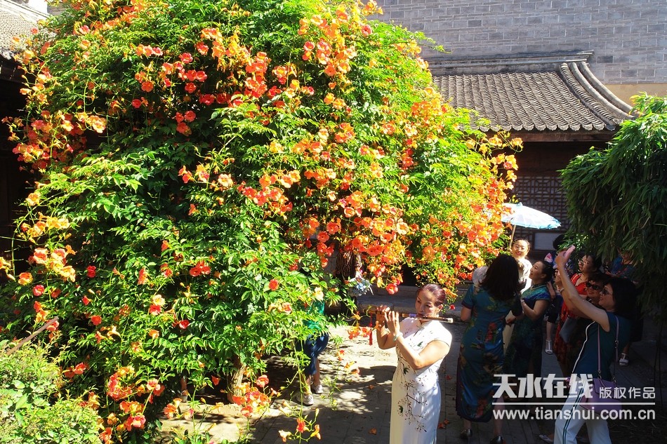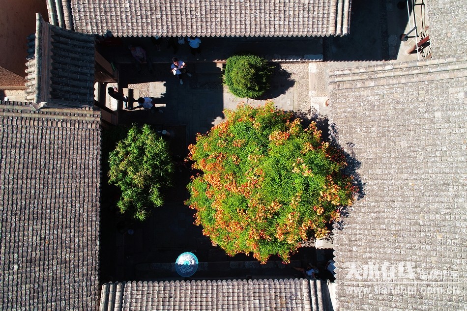天水在線7月12日報道 近日,位于天水南宅子凌霄院的百年凌霄樹,花開滿院,每天都吸引眾多游人參觀拍照,成為繼“黃金大道”、“玉蘭古巷”等我市“網(wǎng)紅”景點之后,又一新晉“網(wǎng)紅”。為此,天水在線于7月9日以標(biāo)題為“天水南宅子百年凌霄,花開滿院,驚艷全城”進(jìn)行了報道,引發(fā)網(wǎng)民持續(xù)關(guān)注和熱議。為了讓廣大網(wǎng)友,更加領(lǐng)略四百多年古宅、古院和百年凌霄樹花開滿院的盛景,天水在線于7月12日進(jìn)行了航拍。