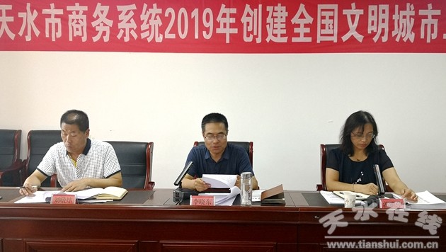 7月23日,天水市商務(wù)局召開了天水市商務(wù)系統(tǒng)2019年創(chuàng)建文明城市工作推進(jìn)會(huì)議,市商務(wù)局分管領(lǐng)導(dǎo)、秦州麥積兩區(qū)商務(wù)局分管領(lǐng)導(dǎo)及業(yè)務(wù)人員、市商務(wù)局相關(guān)科室負(fù)責(zé)人、全市商貿(mào)流通領(lǐng)域重點(diǎn)企業(yè)負(fù)責(zé)人50余人參加了會(huì)議。市商務(wù)局黨組副書記李曉東主持并講話。