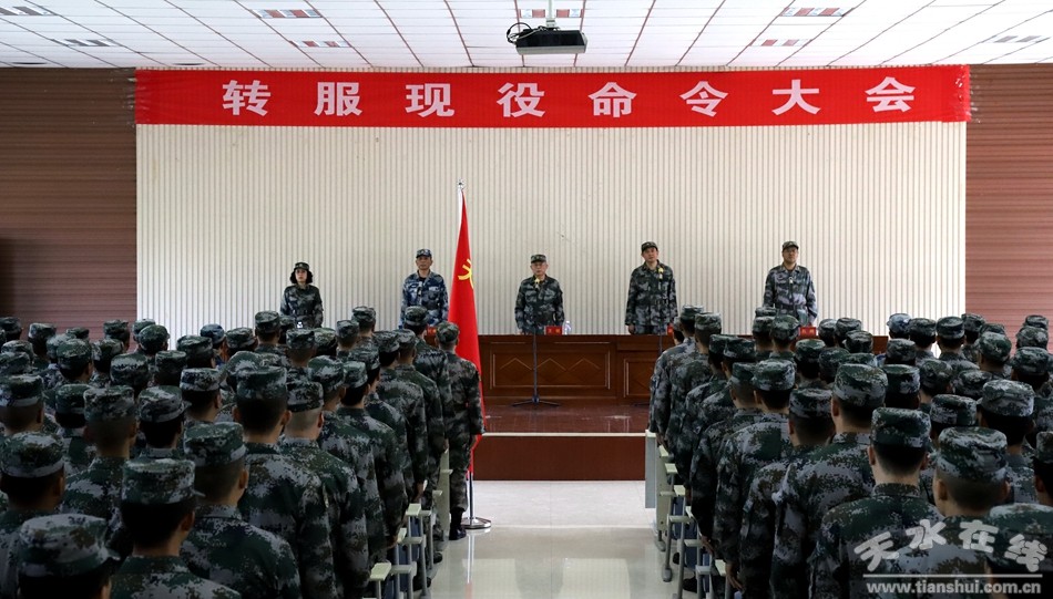 在轉(zhuǎn)服現(xiàn)役命令大會上,市委書記、軍分區(qū)黨委第一書記王銳同志為組建的天水市民兵應(yīng)急營授旗并講話,市委副書記趙衛(wèi)東同志宣讀了轉(zhuǎn)服現(xiàn)役命令,市委常委、天水軍分區(qū)司令員劉甫清宣讀了授銜命令,副市長王燕出席會議。王銳代表市委、市政府對市民兵應(yīng)急營的組建和轉(zhuǎn)服現(xiàn)役的人員表示熱烈祝賀!向駐軍部隊(duì)全體官兵、廣大民兵預(yù)備役人員致以節(jié)日的問候!向全市軍隊(duì)離退休干部、轉(zhuǎn)業(yè)退伍軍人、傷殘軍人和軍烈屬表示誠摯的慰問。