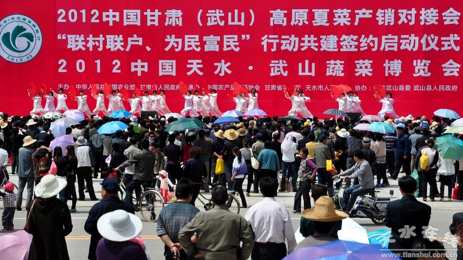 2011年4月25日,鮮花和特色蔬菜將剛剛投入使用的武山縣群眾文體中心廣場裝扮一新,為期3天的“中國天水·武山蔬菜博覽會”在這里開幕。
