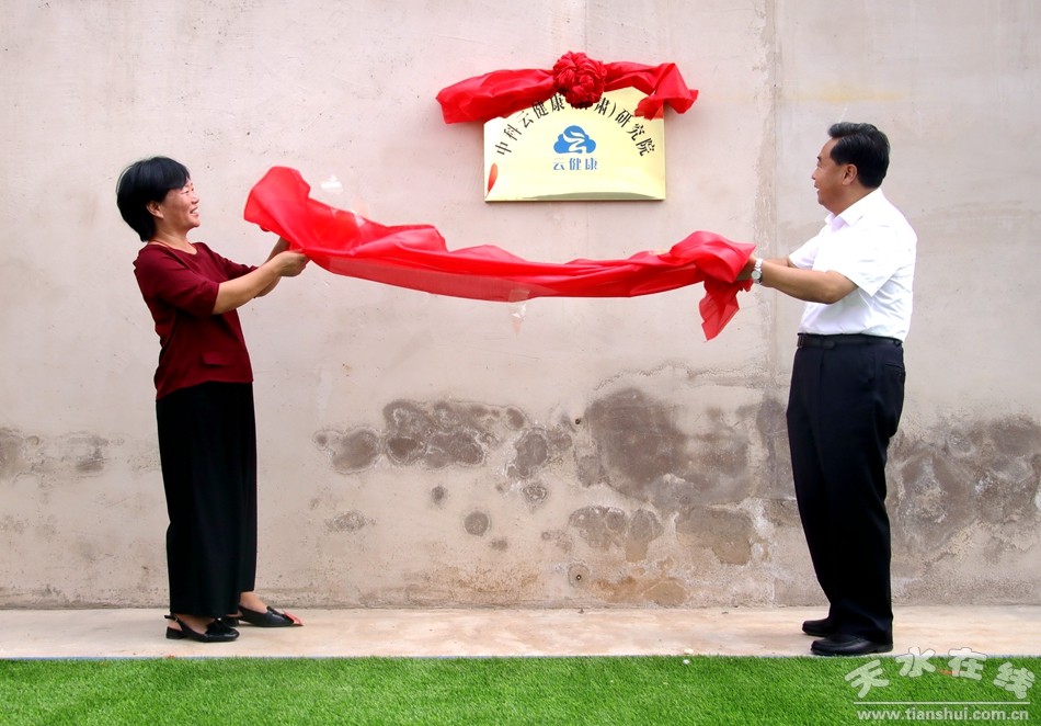 (市政協(xié)副主席、武山縣委書(shū)記索鴻賓與中科院生物研究所高級(jí)工程師李云為中科云健康甘肅研究院揭牌。)