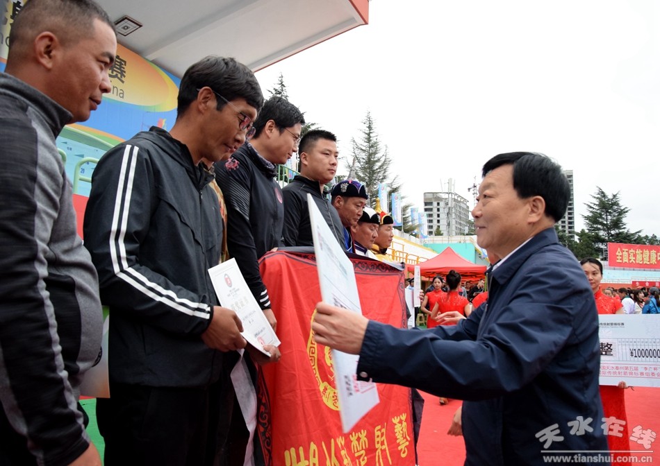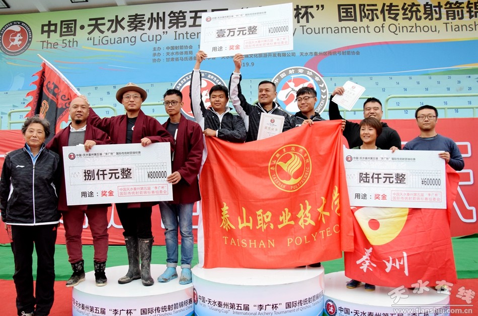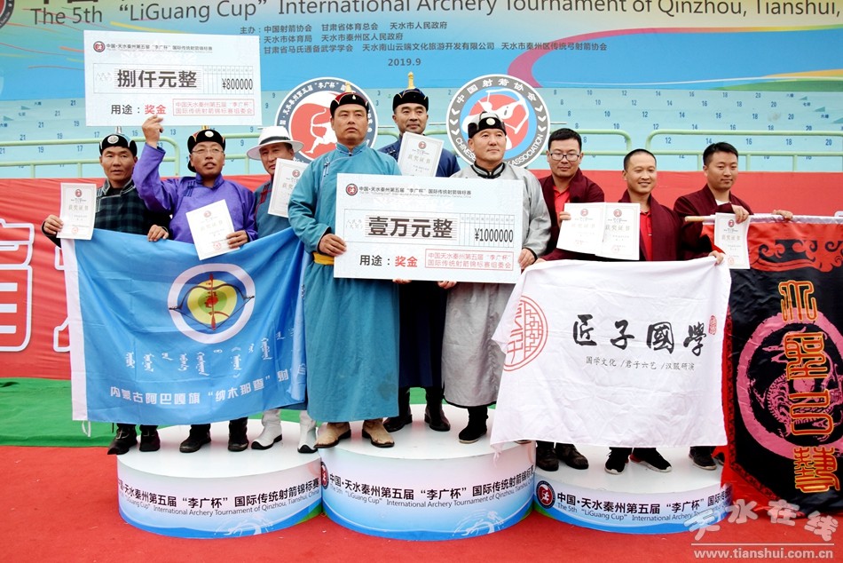最終,內(nèi)蒙古巴林右旗隊、特木爾巴特、湖北荊楚射藝代表分別獲得角弓男子團體、角弓男子個人、現(xiàn)代傳統(tǒng)男子團體第一名;泰山職業(yè)技術(shù)學(xué)院的金宗樂,天水市公園小學(xué)一隊分別榮獲竹木弓男子個人、青少年傳統(tǒng)弓男子團體第一名;天津代表隊的薩仁托婭,北京代表隊的賈小樂分別獲得現(xiàn)代傳統(tǒng)弓女子個人、現(xiàn)代傳統(tǒng)弓男子個人第一名;內(nèi)蒙古巴林右旗隊的斯欽孟和獲得薩仁靶組賽第一名;來自天水殘聯(lián)代表隊的雷圓敏榮獲現(xiàn)代傳統(tǒng)弓殘聯(lián)W2組個人第一名,天水殘聯(lián)代表隊的劉小瑞獲得殘聯(lián)ST組個人第一名;在竹木弓女子比賽中,西北政法大學(xué)代表隊的車金蓉、天水市公園小學(xué)二隊、上海對外經(jīng)貿(mào)大學(xué)、泰山職業(yè)技術(shù)學(xué)院分別摘得竹木弓女子個人、青少年女子團體、現(xiàn)代傳統(tǒng)女子團體、竹木弓混合團體第一名。
