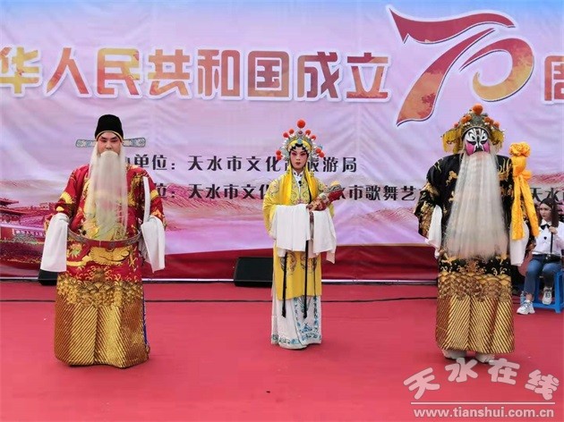 為隆重慶祝中華人民共和國成立70周年,大力弘揚愛國主義精神,謳歌中華民族實現(xiàn)偉大復(fù)興中國夢的奮斗歷程,由天水市文化和旅游局主辦,天水市文化館、天水市歌舞藝術(shù)研究中心、天水市西秦腔研究院承辦的“天水市慶祝中華人民共和國成立70周年廣場文藝展演”第二場秦腔專場文藝演出于9月23日下午3點在龍城廣場開展。