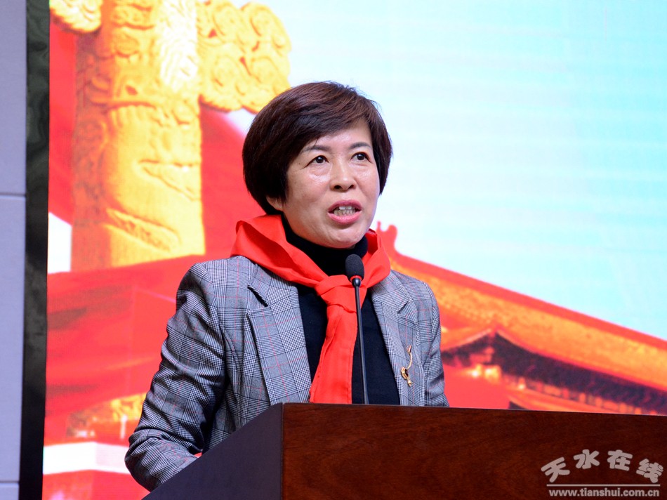 (天水市逸夫?qū)嶒?yàn)中學(xué)校長沈建玲講話)