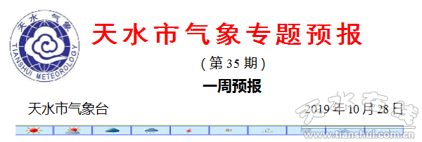 未來一周我市天氣以晴或多云為主,31日受弱冷空氣影響,部分地方有陣雨。具體預報如下:10月28~29日晴間多云;30日多云轉(zhuǎn)陰;31日陰,西南部鄉(xiāng)鎮(zhèn)有陣雨;11月1~2日晴間多云;3日多云轉(zhuǎn)陰。氣溫預報以秦州區(qū)為例,日最低氣溫2~6℃,日最高氣溫15~19℃,日平均氣溫10~12℃。