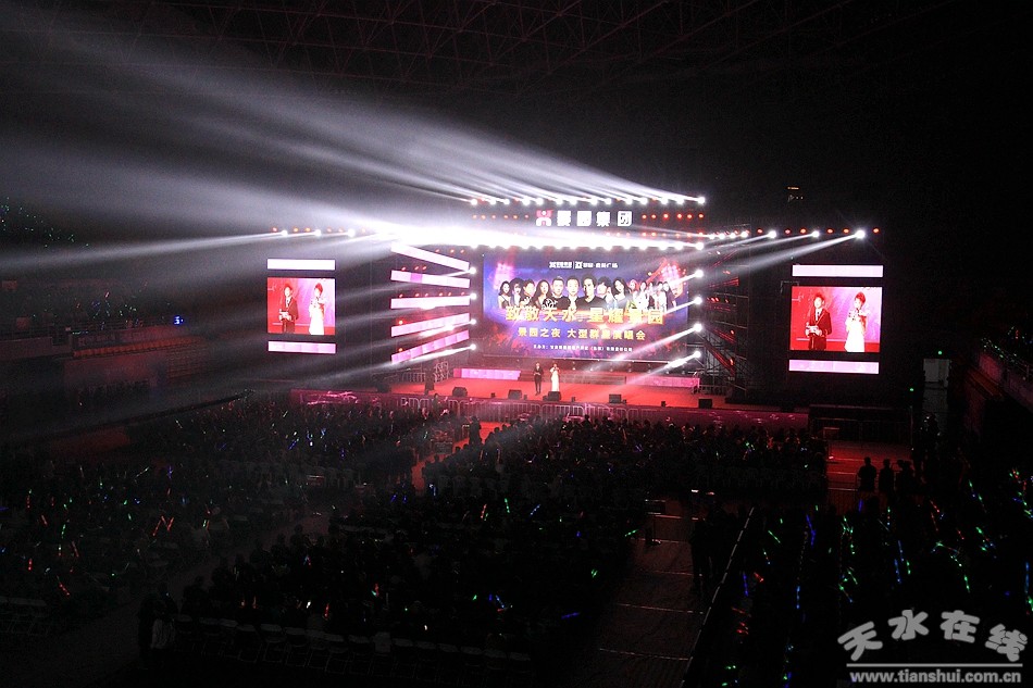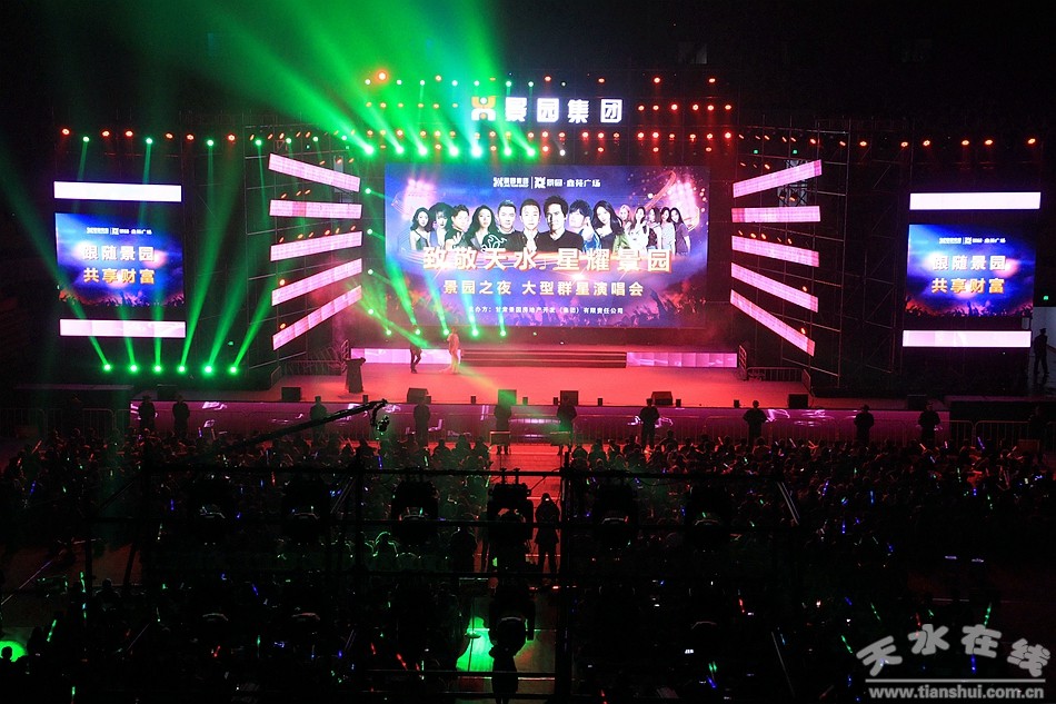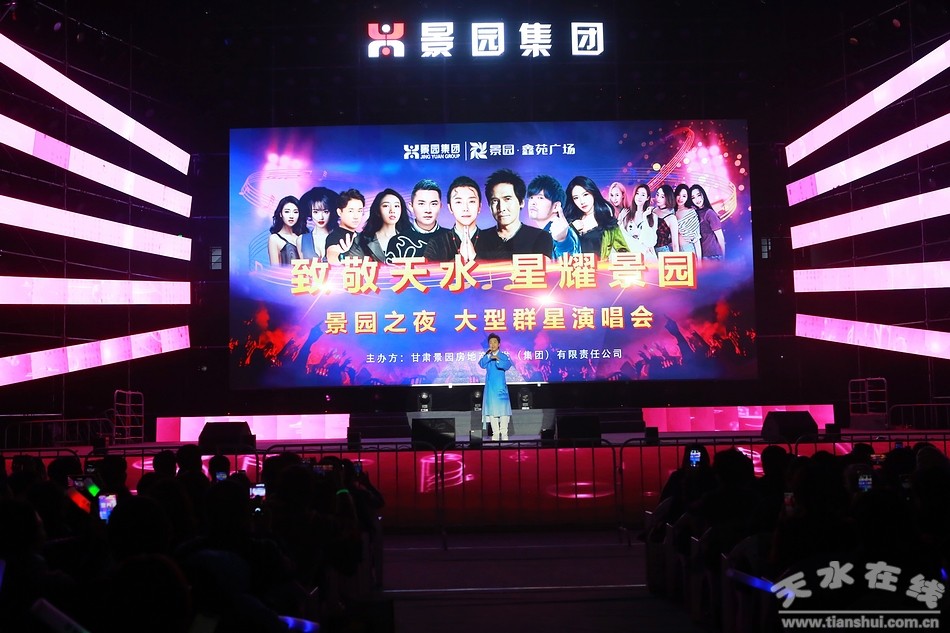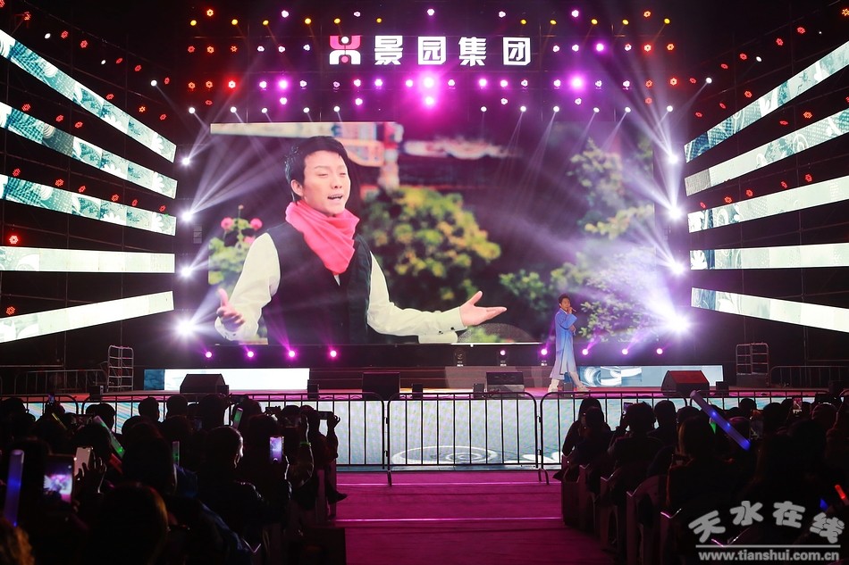 11月10日晚,“致敬天水,星耀景園”,“景園之夜”大型群星演唱會在天水市體育中心精彩上演。以國家一級演員李玉剛為主打歌手,華語流行男歌手齊秦及胡小寶、孫冬、郭飛宏等一批青年歌手加盟,上演了一場別開生面的視聽盛宴。