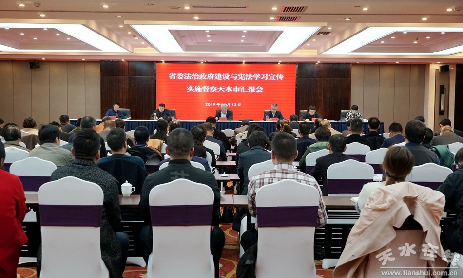 11月12日至13日,省委依法治省辦第一督察組組長(zhǎng)、省司法廳副廳長(zhǎng)曾施霖一行來(lái)天水市,就我市法治政府建設(shè)與憲法學(xué)習(xí)宣傳實(shí)施工作進(jìn)行督察。天水市委常委、常務(wù)副市長(zhǎng)趙四輩主持會(huì)議。