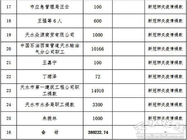 2、天水市紅十字會(huì)捐贈(zèng)信息