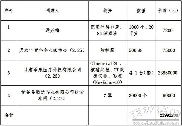 附2、天水市紅十字會(huì)捐贈(zèng)信息