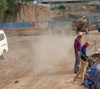 環(huán)境污染問題:施工場地未硬化,裸露工地未覆蓋,現(xiàn)場未濕法作業(yè),揚塵污染嚴(yán)重。