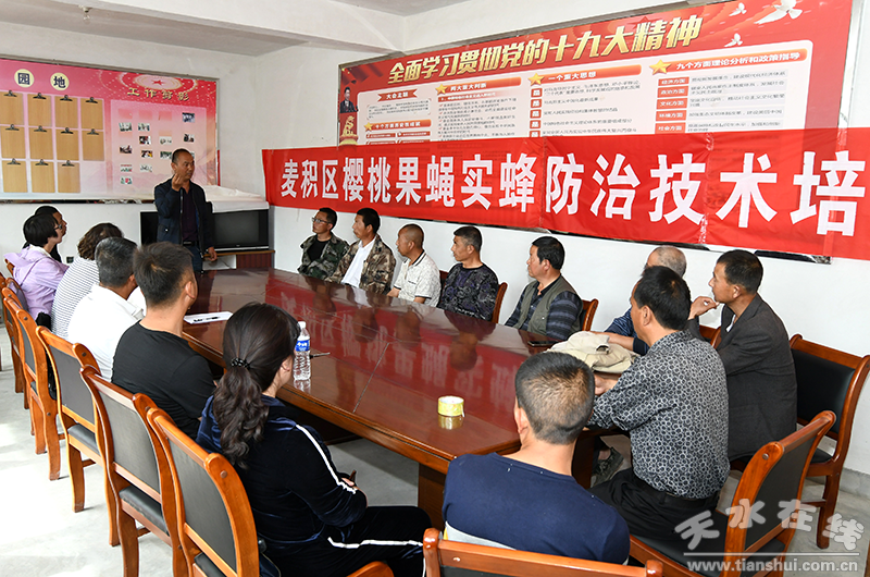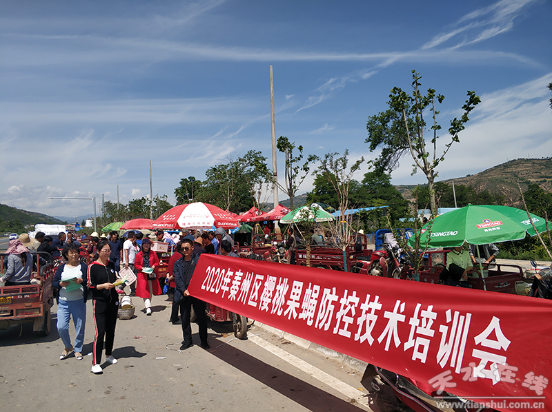 當(dāng)前正值櫻桃果蠅防治關(guān)鍵節(jié)點(diǎn)時(shí)期,需要搶抓防治有利時(shí)機(jī),早部署、早宣傳、早動員,適時(shí)開展相關(guān)工作。為此天水市農(nóng)業(yè)農(nóng)村局成立了六個(gè)技術(shù)指導(dǎo)組,督促和指導(dǎo)縣區(qū)果業(yè)部門負(fù)責(zé)布點(diǎn)和蟲情預(yù)報(bào),市果樹研究所負(fù)責(zé)技術(shù)指導(dǎo)和配合,各縣區(qū)果業(yè)部門統(tǒng)一安排部署,在櫻桃生產(chǎn)重點(diǎn)縣區(qū)、鄉(xiāng)鎮(zhèn)、村開展了櫻桃果蠅、實(shí)蜂防治技術(shù)果農(nóng)培訓(xùn)工作。秦州區(qū)在玉泉、中梁、太京、皂郊、藉口等櫻桃主產(chǎn)區(qū)通過集中舉辦果農(nóng)培訓(xùn)班、散發(fā)宣傳資料、果園現(xiàn)場技術(shù)指導(dǎo)等措施開展果蠅防治工作;秦州區(qū)在籍口鎮(zhèn)、太京鎮(zhèn)、玉泉鎮(zhèn),麥積區(qū)在馬跑泉鎮(zhèn)楊灣村、南崖村舉辦大櫻桃果蠅實(shí)蜂防治培訓(xùn)班兩期,印發(fā)大櫻桃果蠅實(shí)蜂防治資料3000余份。清水縣櫻桃果蠅防治包抓領(lǐng)導(dǎo)組邀請?zhí)焖泄麡鋵<议_展技術(shù)培訓(xùn),在金集鎮(zhèn)金欣果農(nóng)業(yè)專業(yè)合作社舉辦了“清水縣大櫻桃果蠅實(shí)蜂及霉心病防治技術(shù)培訓(xùn)班”,采取課堂講授和果園現(xiàn)場指導(dǎo)相結(jié)合的方式進(jìn)行培訓(xùn),新城、遠(yuǎn)門等十八鄉(xiāng)鎮(zhèn)260個(gè)貧困村的建檔立卡貧困戶100多人參加,做到技術(shù)指導(dǎo)和措施落實(shí)全覆蓋。截至目前全市共舉辦櫻桃果蠅防治培訓(xùn)班120期,培訓(xùn)果農(nóng)5000人,散發(fā)技術(shù)宣傳資料1萬余份,另外還通過現(xiàn)場指導(dǎo)、微信群等媒體平臺開展多種形式宣傳培訓(xùn)工作。
