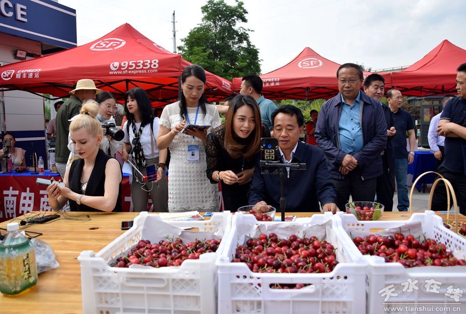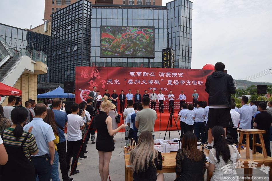 6月6日,由天水市商務(wù)局 、秦州區(qū)人民政府主辦,秦州區(qū)商務(wù)局、天水電商網(wǎng)紅孵化中心、上億廣場承辦的“電商助農(nóng) 消費(fèi)扶貧 ‘天水秦州大櫻桃’直播帶貨活動在秦州區(qū)上億廣場舉行。